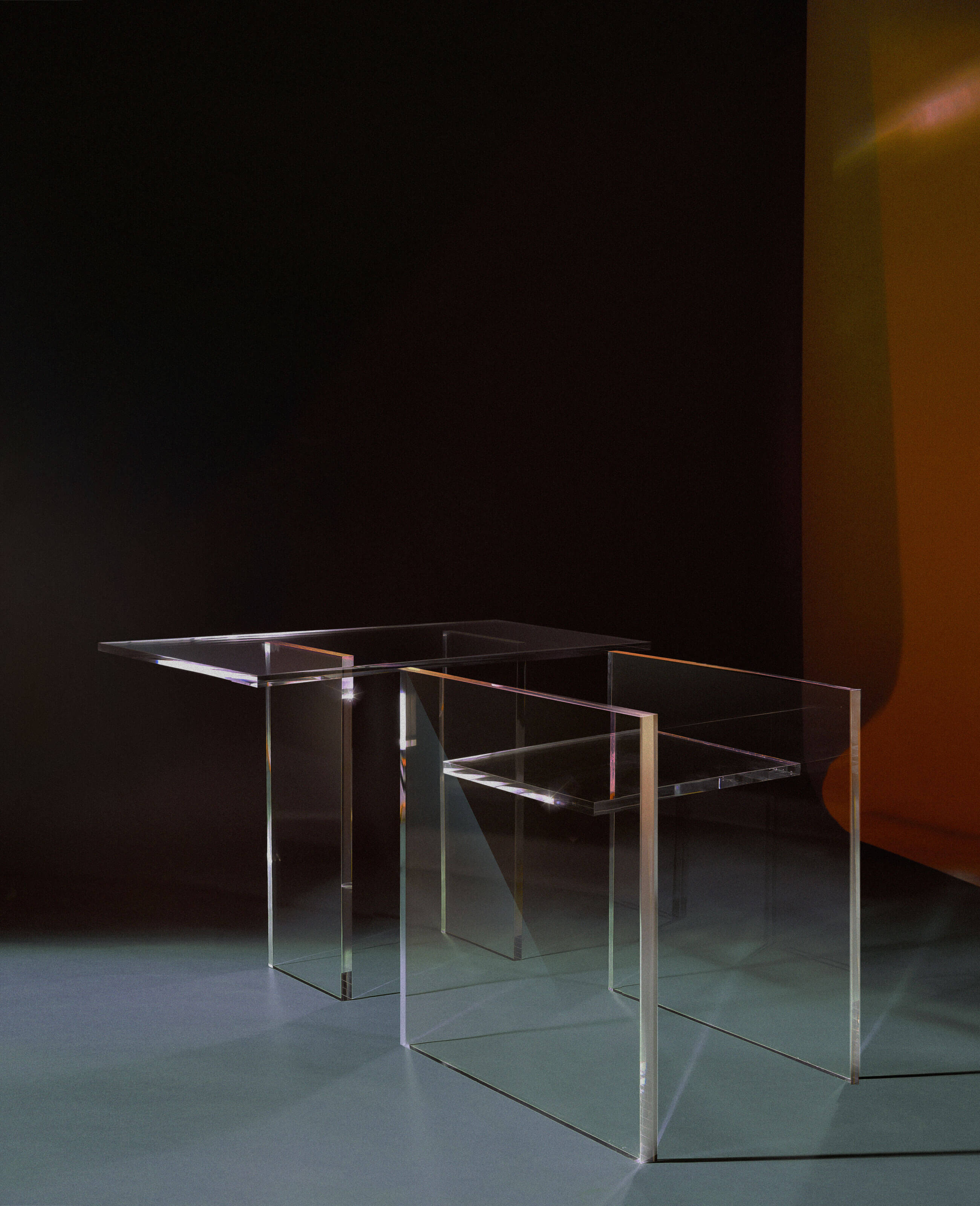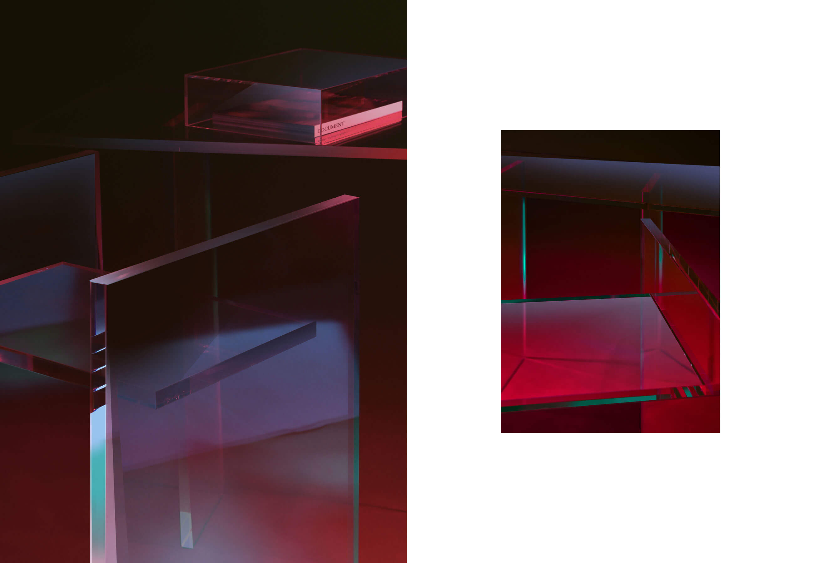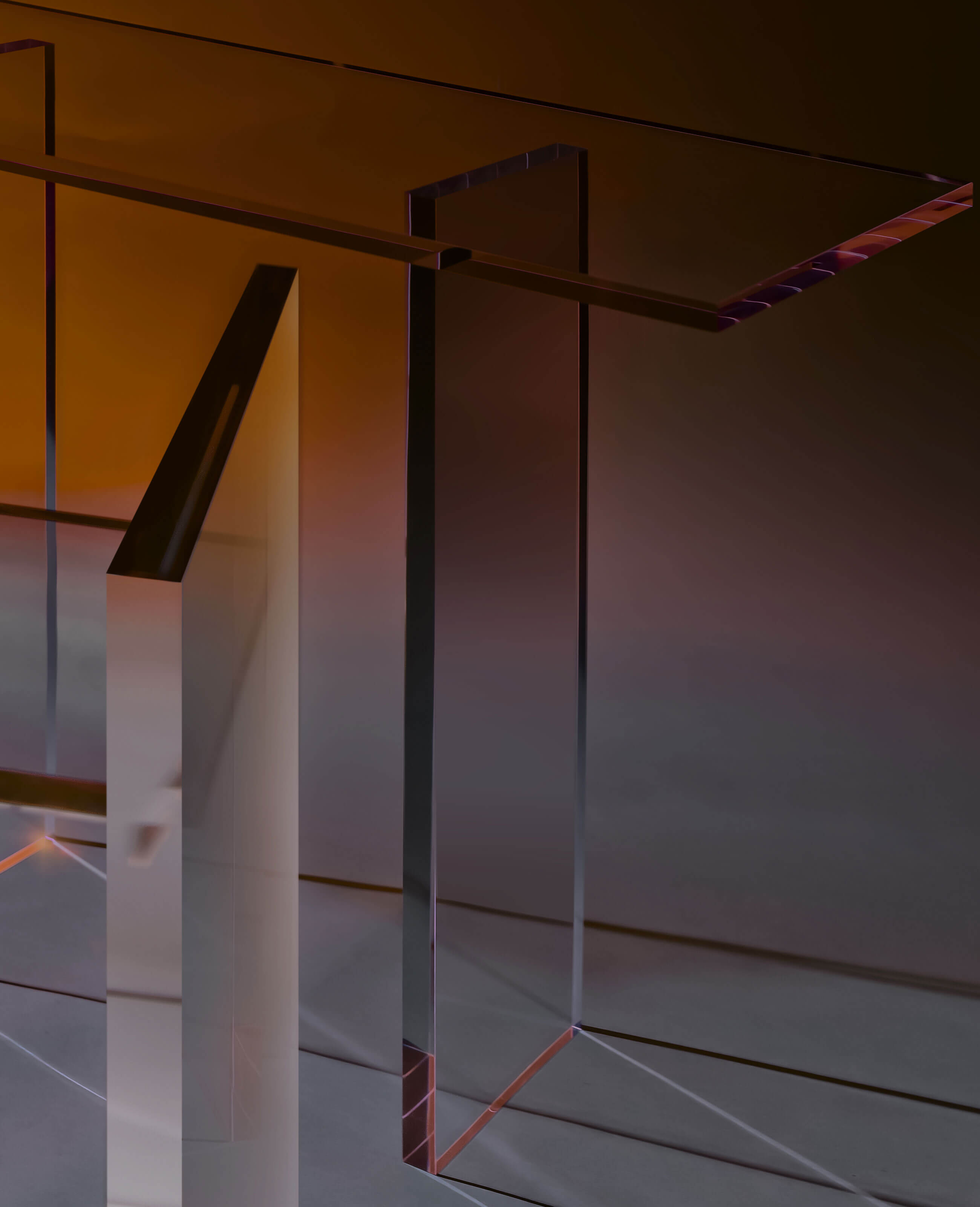 Another Slang was commissioned to design and produce an iconic table and chair. These prototypes are made of Acryl glass and are ready to go into series production. We called the set “ANDO” – inspired by modern Japanese architecture and the idea to create a fully usable set of futuristic furniture, that is entirely invisible until the light reflects on the surface.
