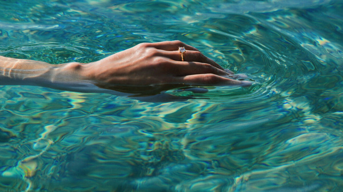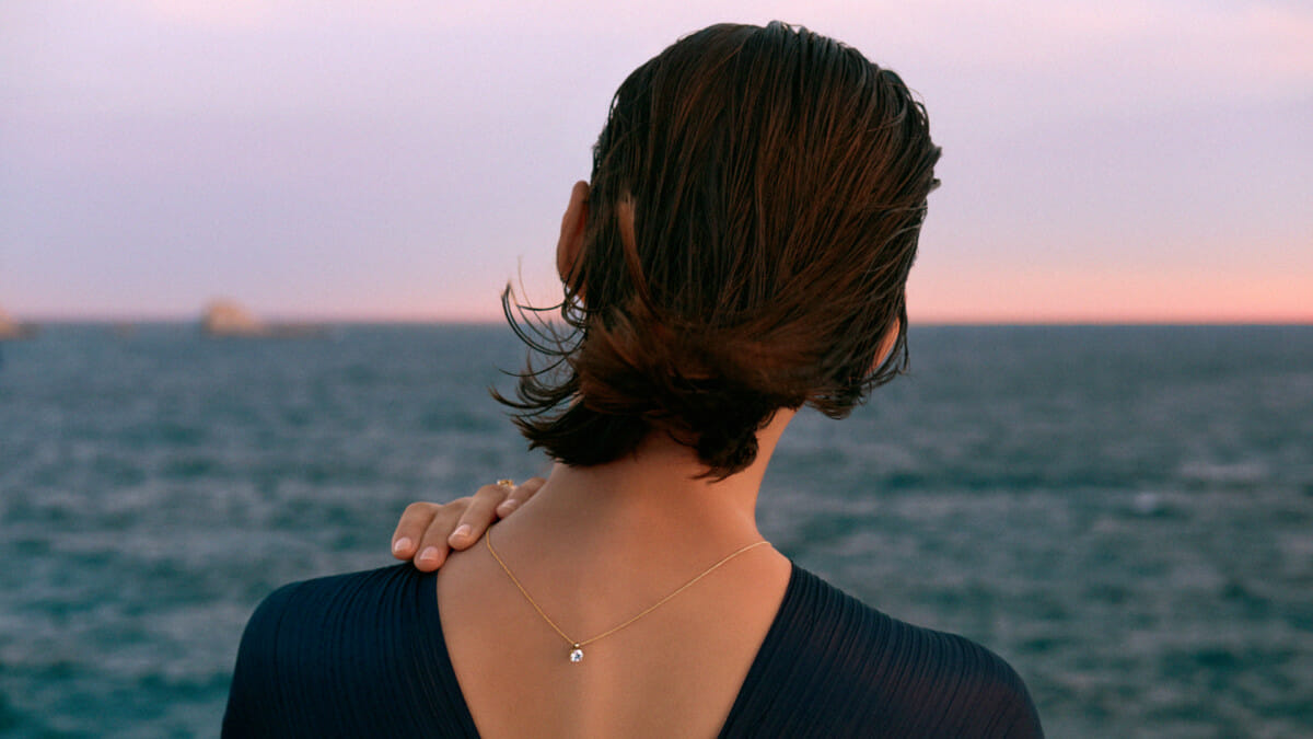 A photo campaign shot on the otherworldly location of Milos island in Greece delivers an avant-guard visual narrative, pushing the boundaries of traditional jewelry campaign. The combination of surreal natural location, pink skyline, humble elegance of the model Sibui Nazarenko together with an unconventional eye of the Greek photographer Chris Kontos tells a memorable story that is impossible to recreate or stumble upon elsewhere.