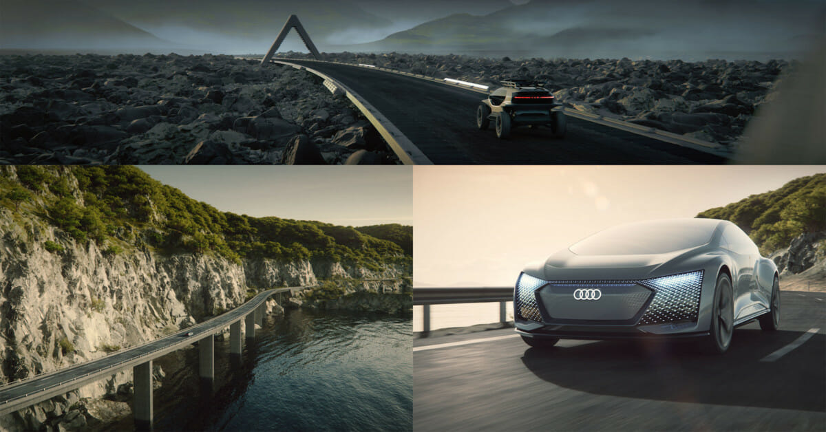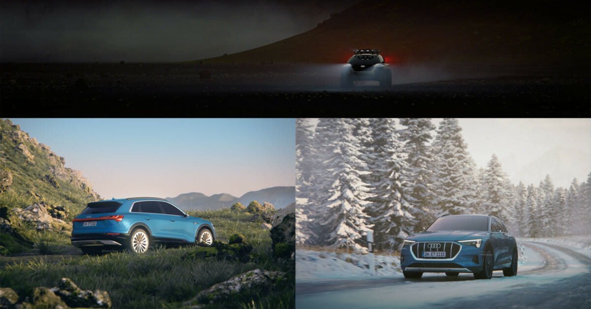 Our job was to produce five fully CGI films, each featuring one model of Audi’s electric line-up. The world premiere AI:TRAIL, AI:CON, AI:RACE, AI:ME and Audi e-tron were each presented in their native world. That meant we had to develop five distinct virtual worlds with a high degree of realism, present the emotional world, driving scenes, each car’s design and features, and keep one visual language throughout all chapters.