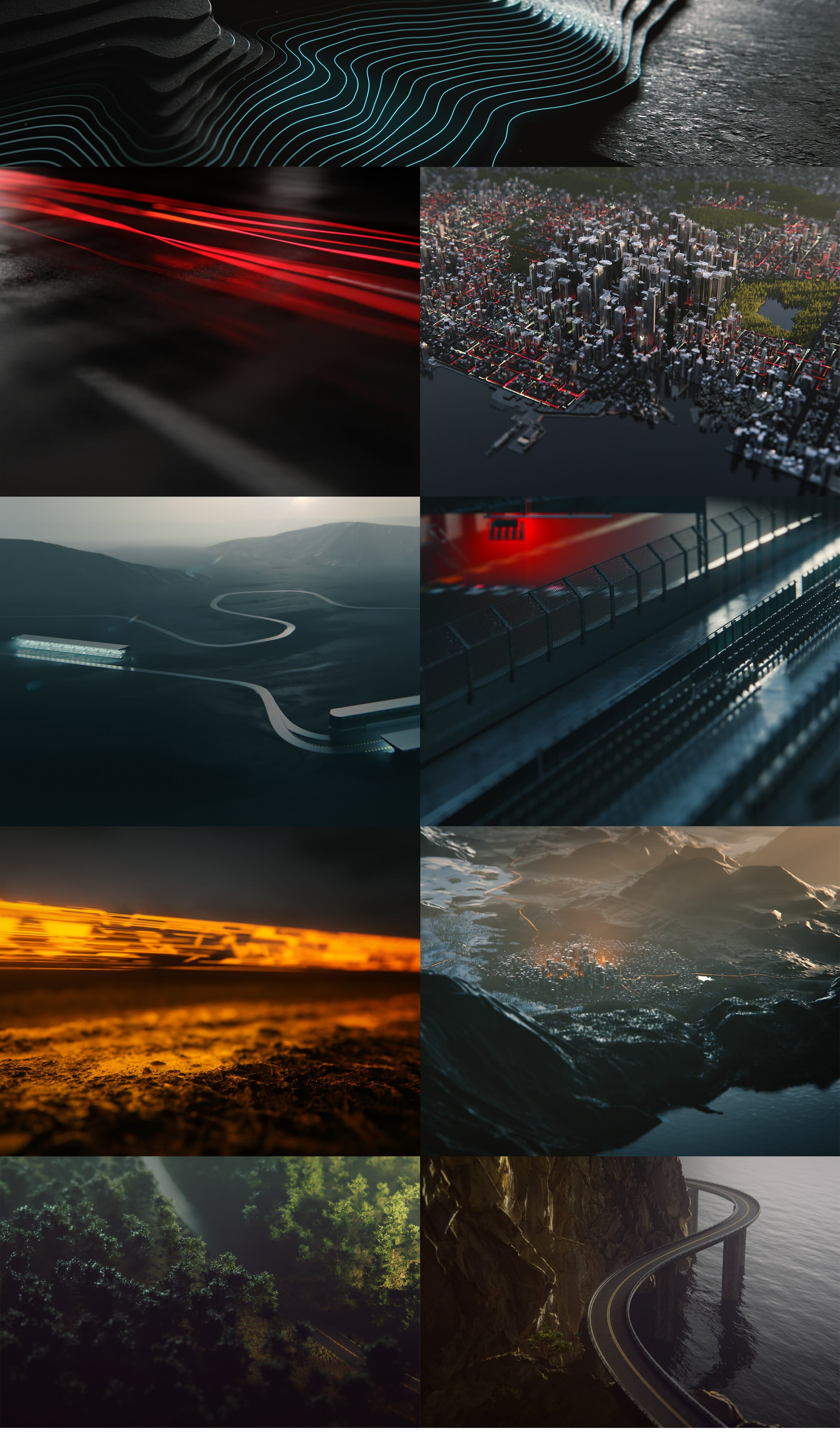As a specialist for CGI cars we could rely on our production proven team, tools and pipeline to approach this project with confidence. We worked on all stages of production in parallel, providing Audi with full colour renderings very early in the process. This allowed for very focused feedback, steady iteration and a very efficient process overall. From interactive GPU-Rendering, proprietary Houdini landscaping tools that used photogrammetry assets provided by quixel up to our custom automotive motion solver – we translated the idea of ‘Vorsprung durch Technik’ to our CGI production.