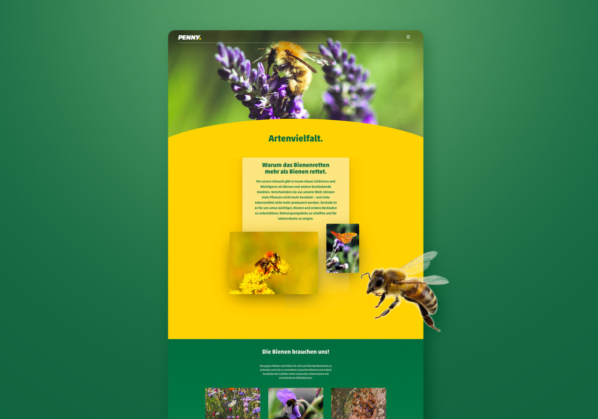 The Homepage did not just offer the mission statement of PENNYs sustainable route, but also an overview of all the touchpoints tackled.