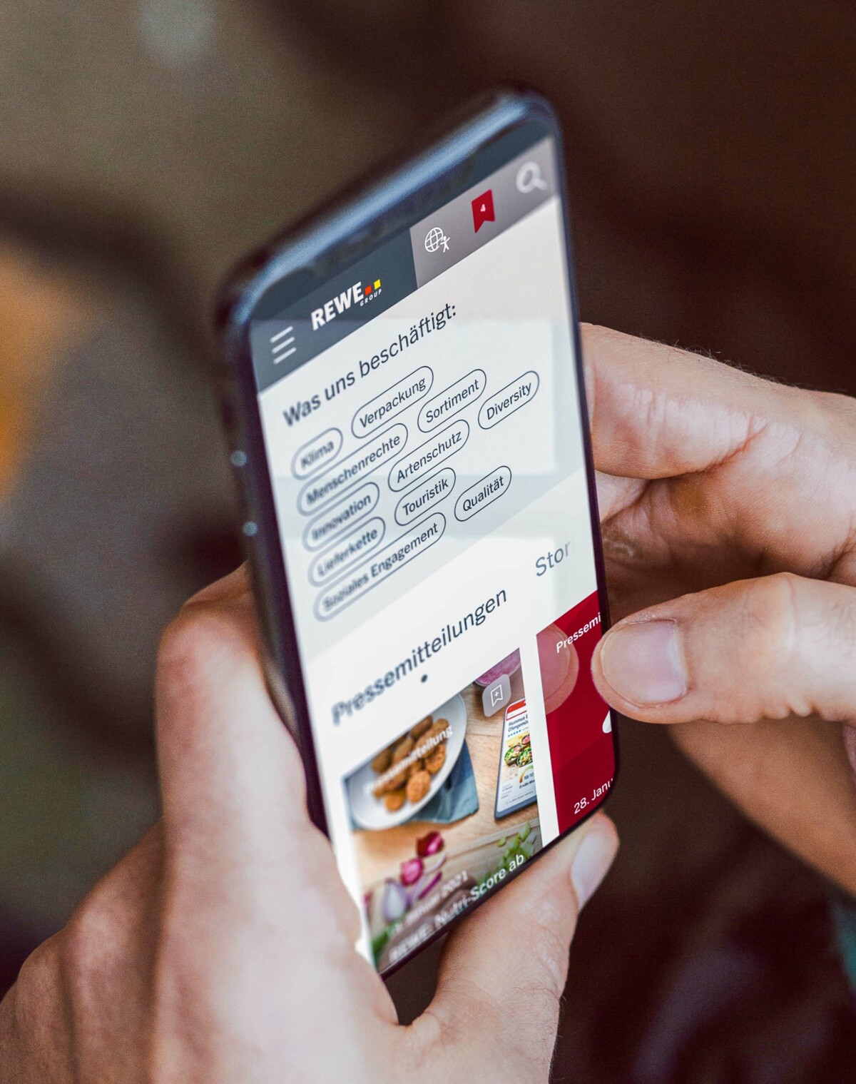 A comprehensive digital hub, a clever system, a systemic design. Powerful search functions meet intuitive operation. The REWE Group website brings topics to the point in a transparent and user-friendly manner. With its intelligent system in the background, it can be quickly filled with high-quality content. It is easy to maintain – and the point of contact for all target groups, for socially relevant topics in the retail industry. The new benchmark!