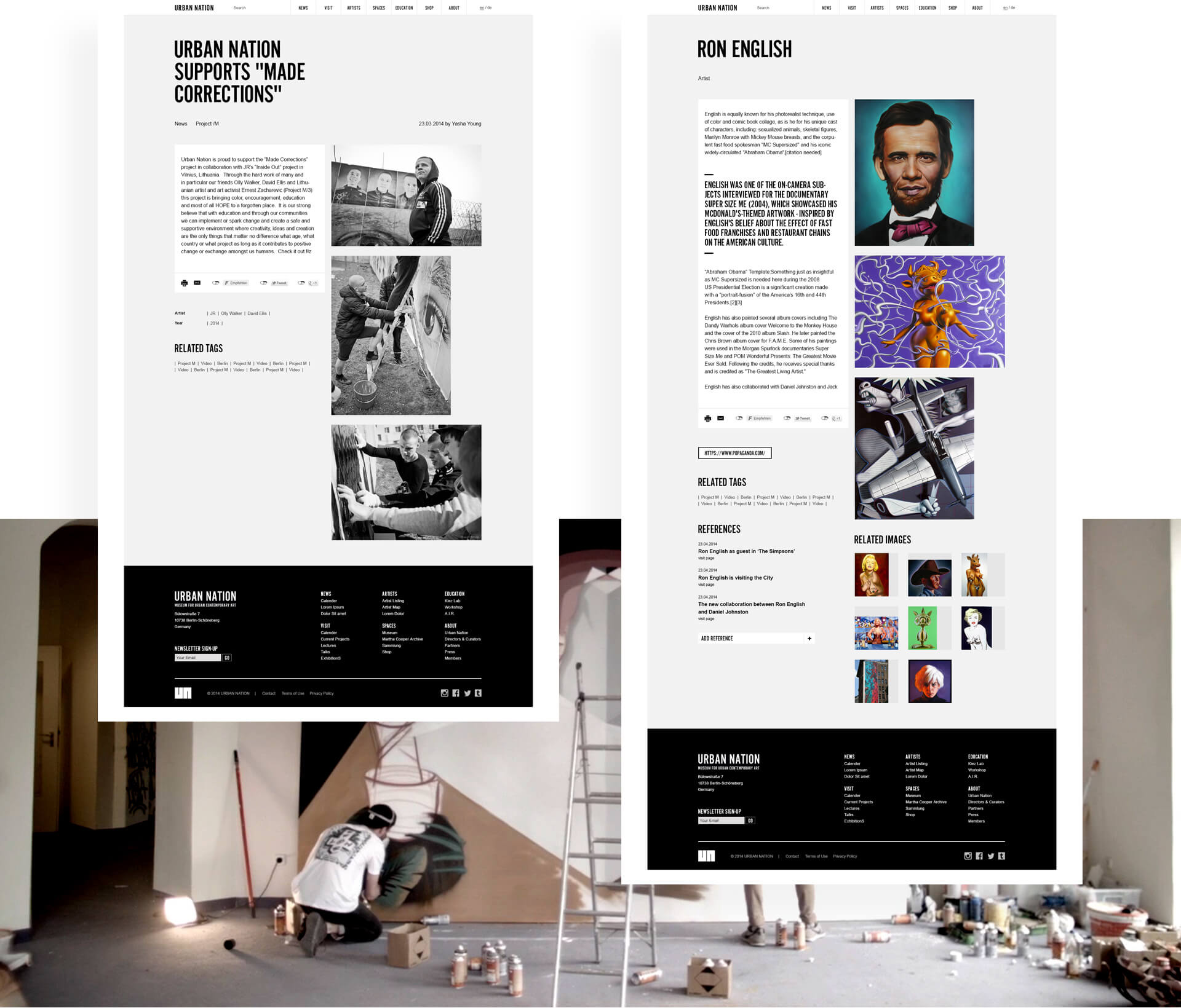 Our task was to build a digital home for URBAN NATION which fits its needs. The design needed to support the content instead of being the content. A space that is generated by supporters and curated by URBAN NATION.