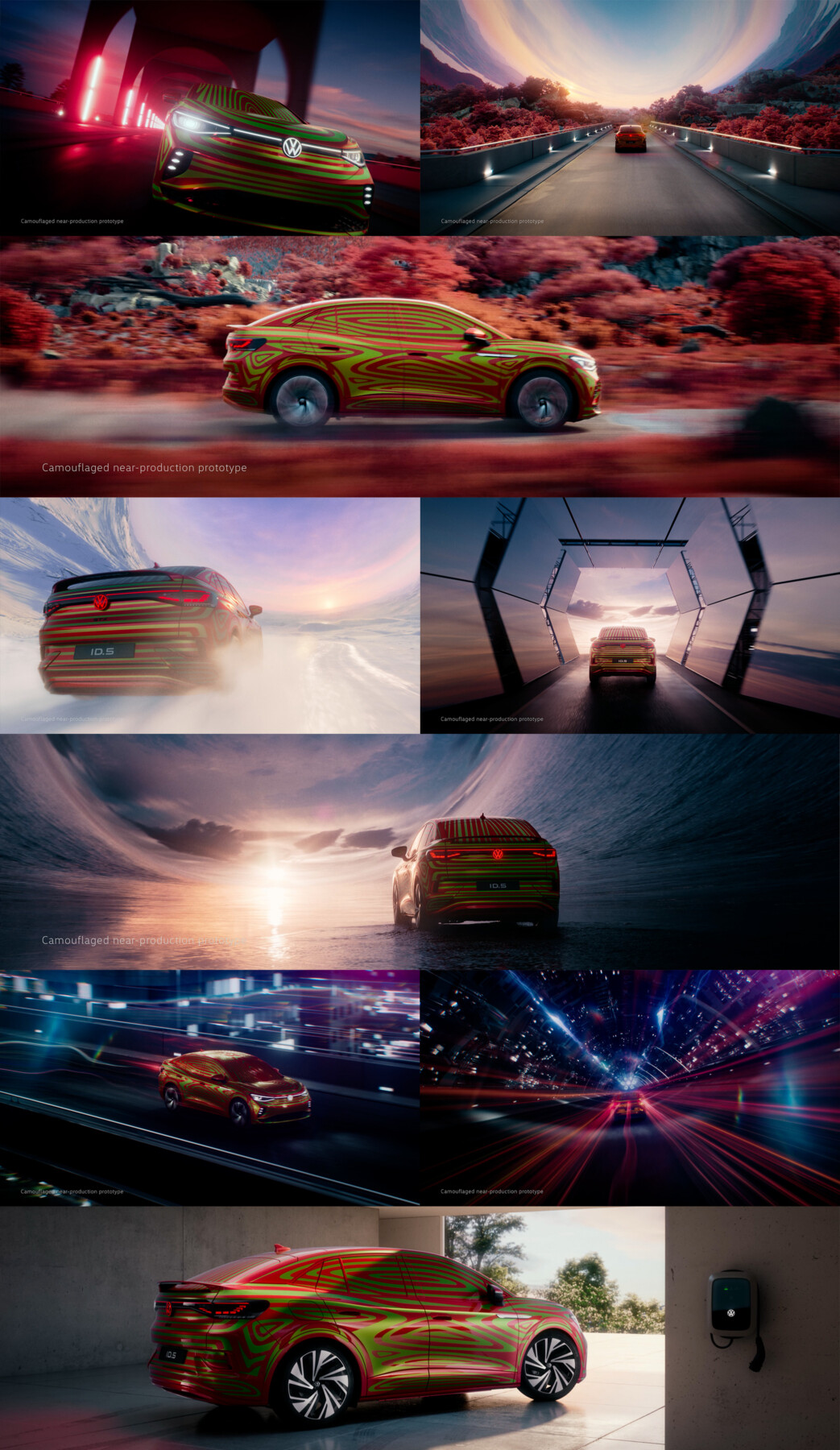 With new ID.5, Volkswagen adds a sporty and elegant full electric Coupé to the ID-Family. It combines a sporty, elegant coupé design with the qualities of the ID range: a cross-class sense of space, intuitive operation, is fully networked – and can be updated “over-the-air”. The high-quality coupé design stands out clearly from the appearance of conventional vehicles – and is unique in its segment. Together with Voltage we created this stunning and trippy full CG announcement film, featuring a camouflaged near-production prototype of the ID.5, that is certainly as unique as the vehicle itself – Thank you for having us!