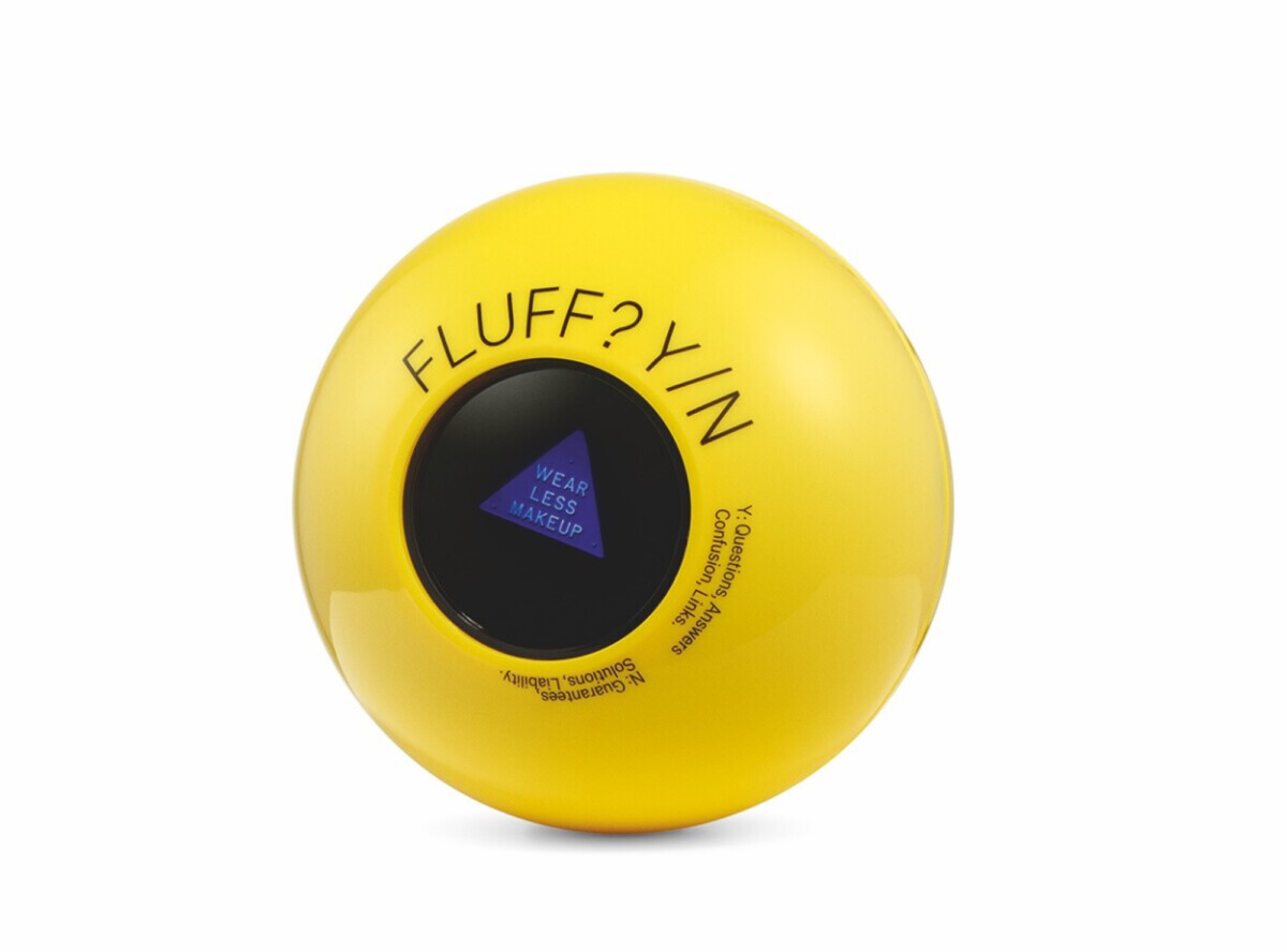 Currently, fans can order 16 different cosmetic products on the bright yellow company website, which keeps the target group interested with horoscopes and advice articles. In addition, the merchandise includes T-shirts printed with the statement “I’m prettier now that I don’t care,” or the bestseller in this category: the Magic 8 Ball, a squeaky yellow plastic sphere that answers its owners’ questions with suggestions on a simple triangular display. One of them is “Wear less make-up.”