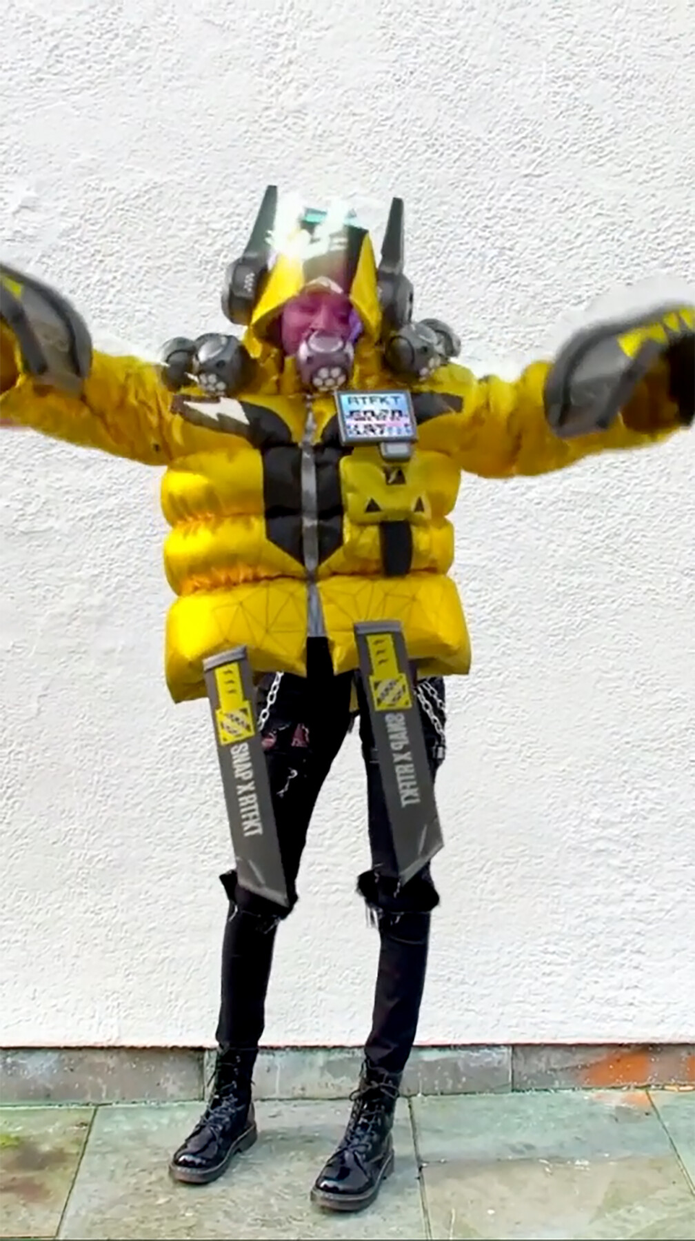 a view of how it might look through AR glasses. In February they posted a photo of Elon Musk with their sneakers superimposed onto his feet. “AR will be the next paradigm shift that will completely change personal style and fashion in the next 10 years” says RTFKT co-founder Benoit Pagotto. “NFTs combined with the future release of consumer-ready AR glasses will enable that revolution to happen.”